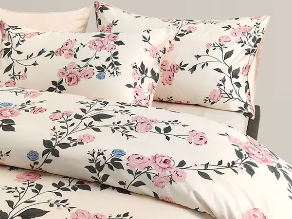 Exquisite digital printing and low-saturation color schemes add a warm atmosphere to the bedroom.